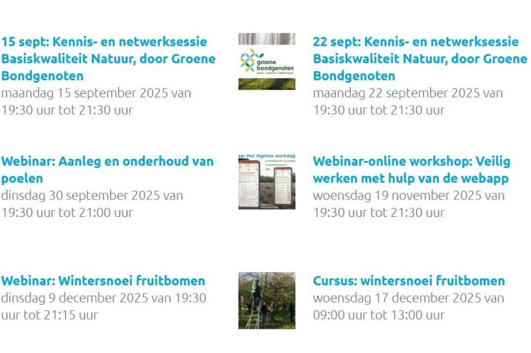SLG heeft in 2025 weer een mooi aanbod aan webinars (online presentaties) en cursussen. Allemaal onderwerpen die interessant kunnen zijn voor jouw vrijwilligerswerk en die het werk in het landschap nog boeiender maken. Klik op het logo.