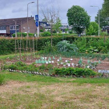 In de Moestuin van de Buurtboomgaard groeien diverse groenten. Naast de snijbiet en de artisjokken worden er ook bonen geteeld. Ook rabarber is aanwezig. Samen met bijvoorbeeld zonnebloemen zorgen deze planten voor een diverse en kleurrijke oogst.