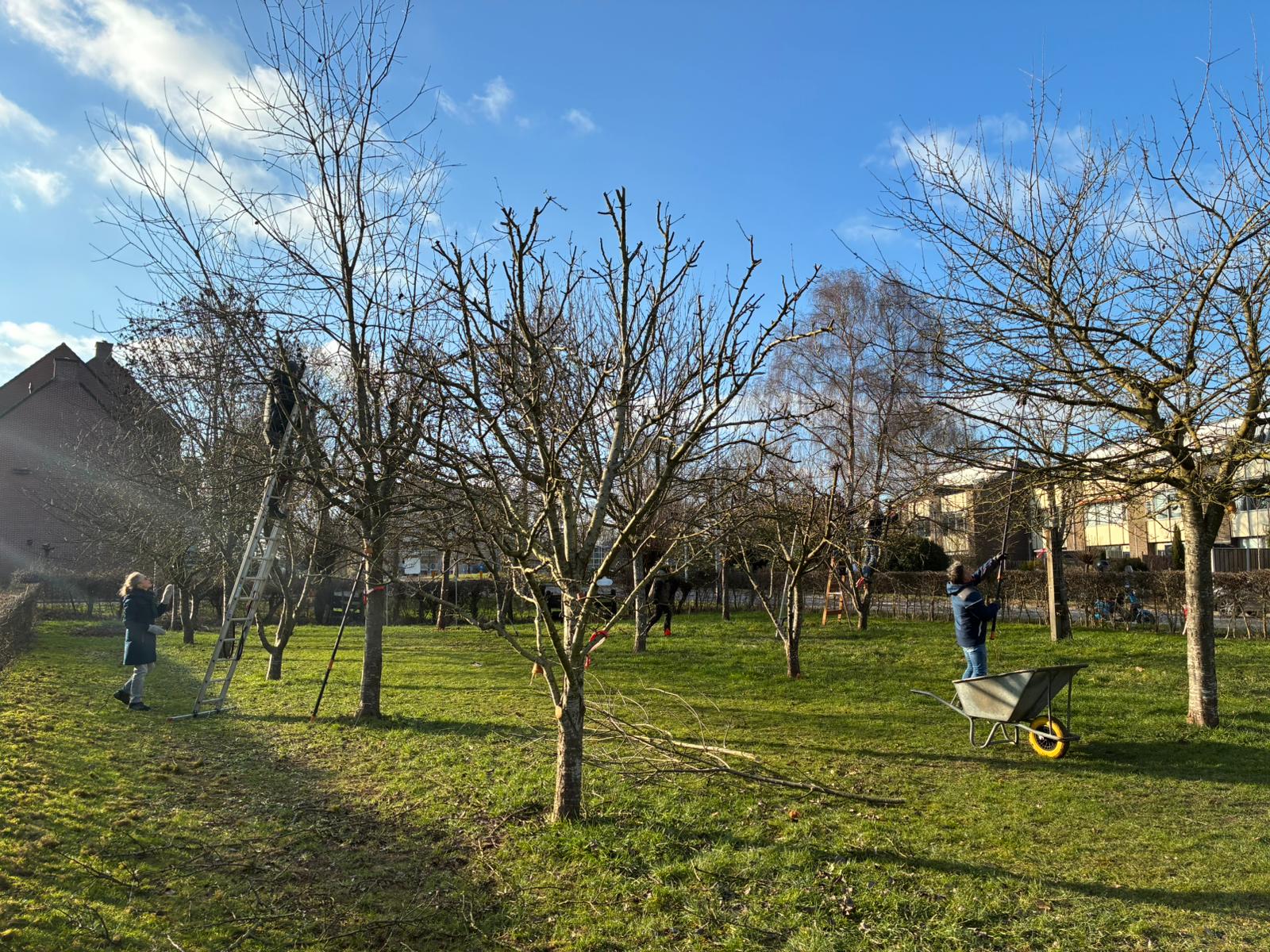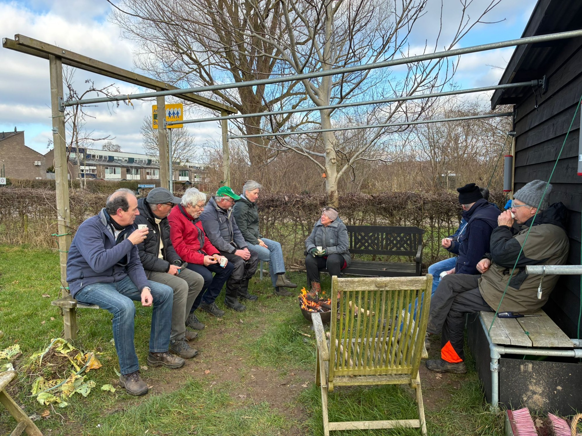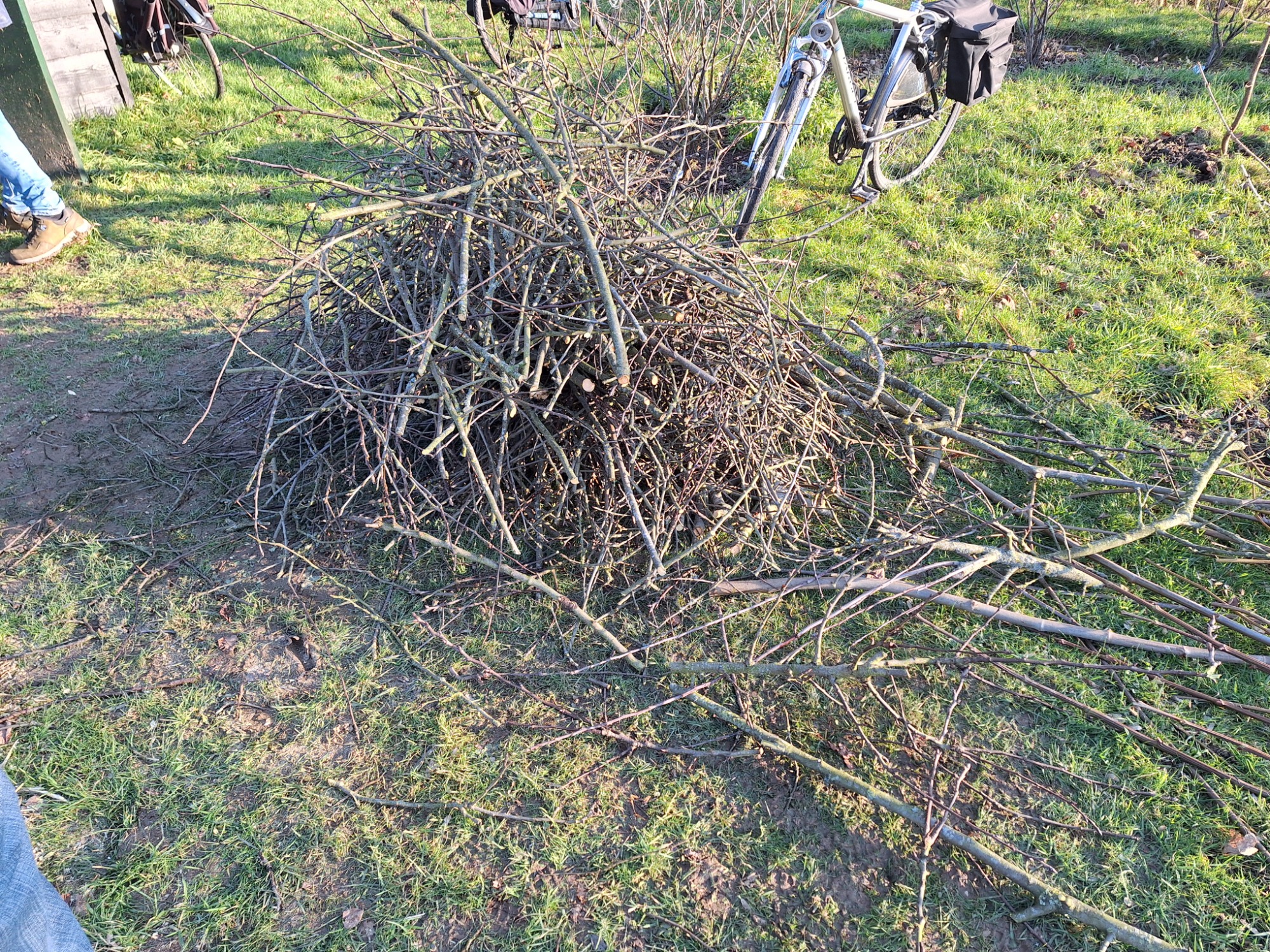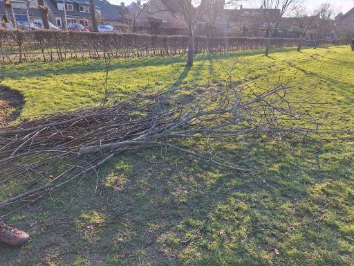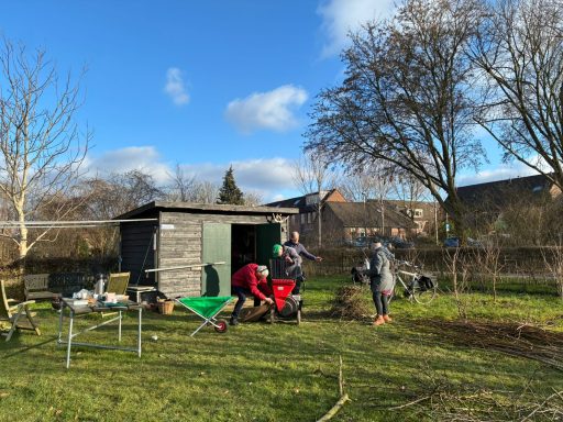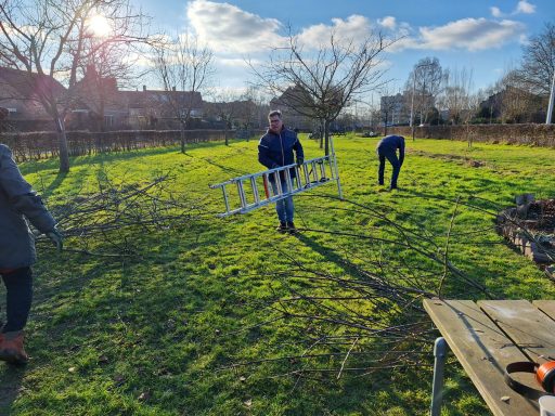 Ook al was de temperatuur aan de lage kant, we hebben een hele leuke middag gehad met zijn allen. Snoeien, hakselen, vuurtje stoken en koeken bij de koffie en thee.